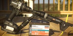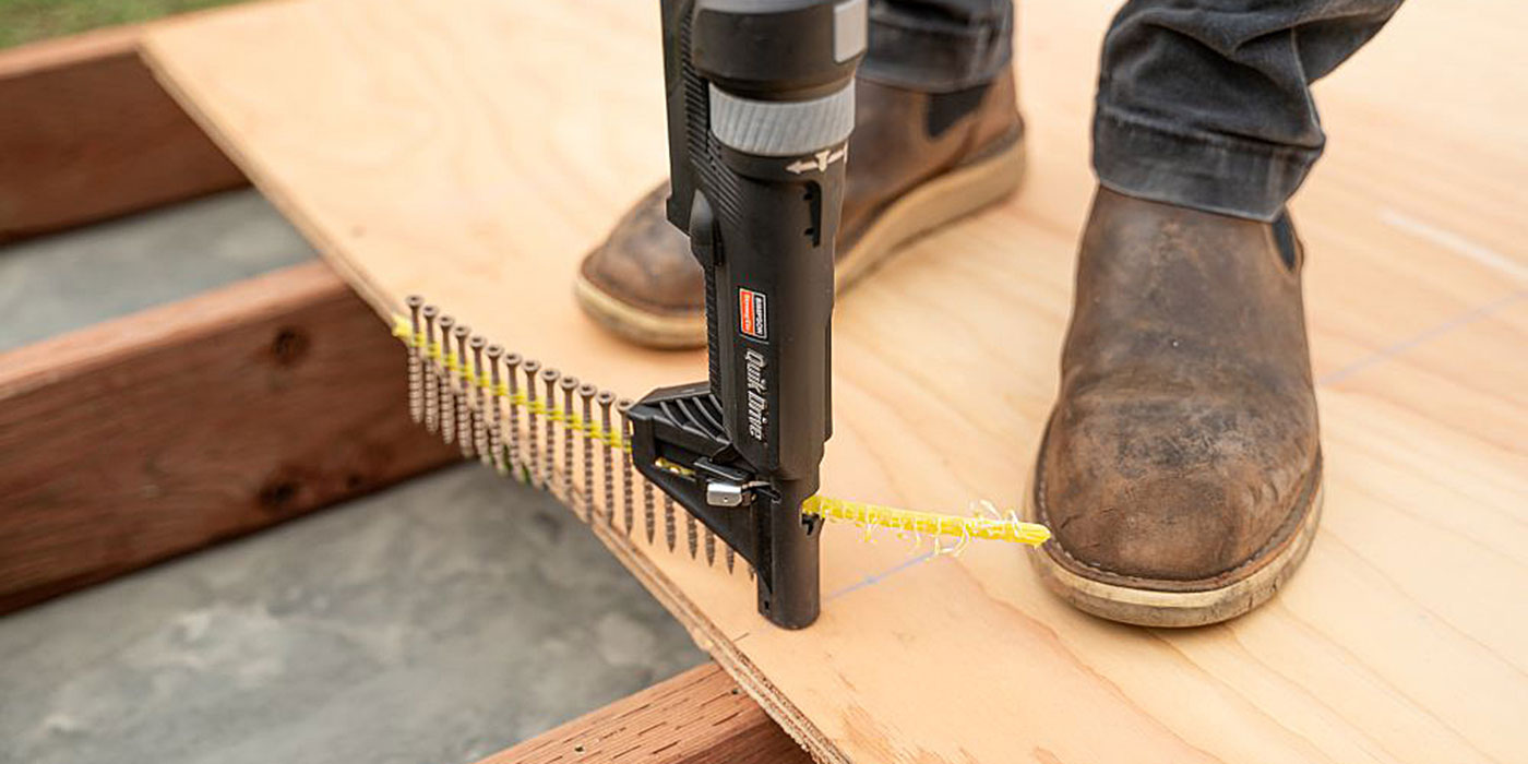Introducing the Quik Drive Project Pro screw driving tool. Project Pro makes it easy to drive screws up to four times faster than traditional drivers alone. It’s perfect for repetitive fastening on decks, fences, flooring and other home improvement projects. Lightweight and simple to attach, Project Pro works with most cordless drills and driver motors and installs collated fasteners that are 1-5/8″ to 2-1/2″ long. For outdoor projects, use Deck-Drive™ DSV Wood screws. Indoors, use Strong-Drive® WSV Subfloor screws. Like other products from Simpson Strong-Tie, Project Pro is widely available and backed by expert service and support. Save time and effort on your next project.