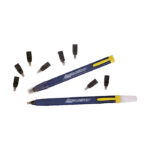 This handy refillable carpenter pencil never needs sharpening. It always maintains its length so it won't get lost. The lead also lasts 5-times longer since there is no waste due to sharpening. Includes eight replacement lead tips. May be special order.
