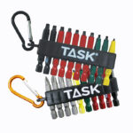 Convenient and secure storage for essential bits, allowing for quick access and easy transport on a tool belt or bag. Choose from a set of Robertson bits or mixed Phillips and Robertson bits.