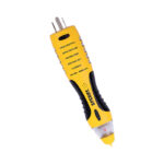Two popular testers in one. Features a non-contact voltage detector on one end and GFCI outlet tester on the other. Single LED provides immediate indication of the wiring error. Bright 360° viewable LED indicator lights. Beeping audible indicator confirms presence of voltage. Hi-impact ABS housing withstands a ten foot drop. May be special order.