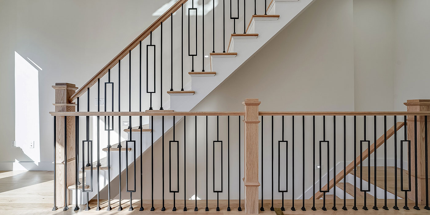The style you choose should reflect the overall architecture of your home. The most common material for stair treads and railings is natural wood stained in warm, medium-to-light tones. Balusters are available in many varieties and will give your staircase a style direction. Wood balusters either stained or painted are a classic traditional look while glass and metal designs lean more contemporary.