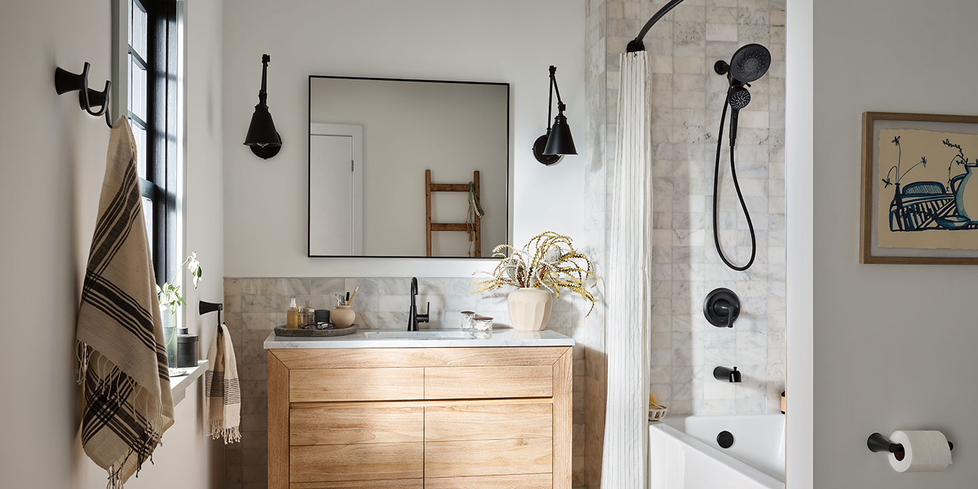 Clean and contemporary are back “en vogue” for 2026 bathroom design. A sleek matte black continues to dominate for its bold, modern look, while mixed-metal combinations can help add dimension and personality to spaces.