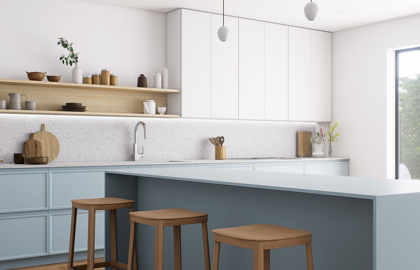 For 2026, many major paint brands, including our recommended SICO brand, are highlighting deep greens, burgundies and muted blues as their Colour of the Year. Paired with natural wood, these rich tones create a warm, elevated, and high-end kitchen look.