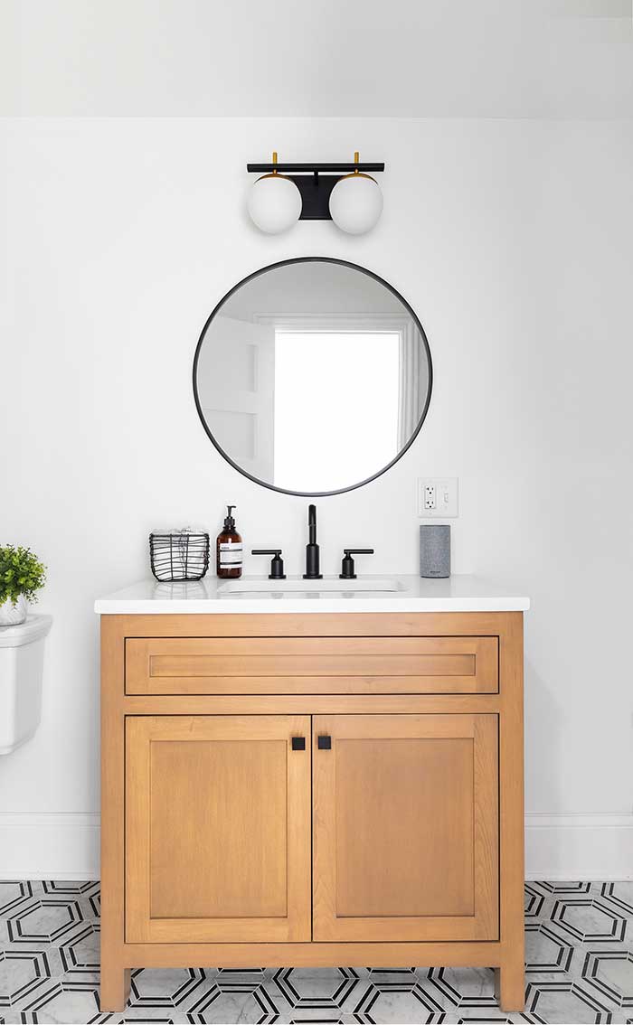 Go bold with the colour of vanity you choose or perhaps a patterned tile on the floor. Or you can play it safe with the more permanent features of the room and go for a dramatic colour on the walls. Adding wainscotting or shiplap to the walls will give your powder room a traditional look or go for stone veneer behind the vanity for contemporary style.