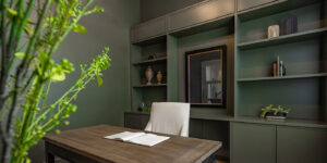 La tendance de la saturation de couleur consiste à peindre toutes les surfaces d’une pièce d’une seule couleur : murs, plafond, moulures, portes et éléments