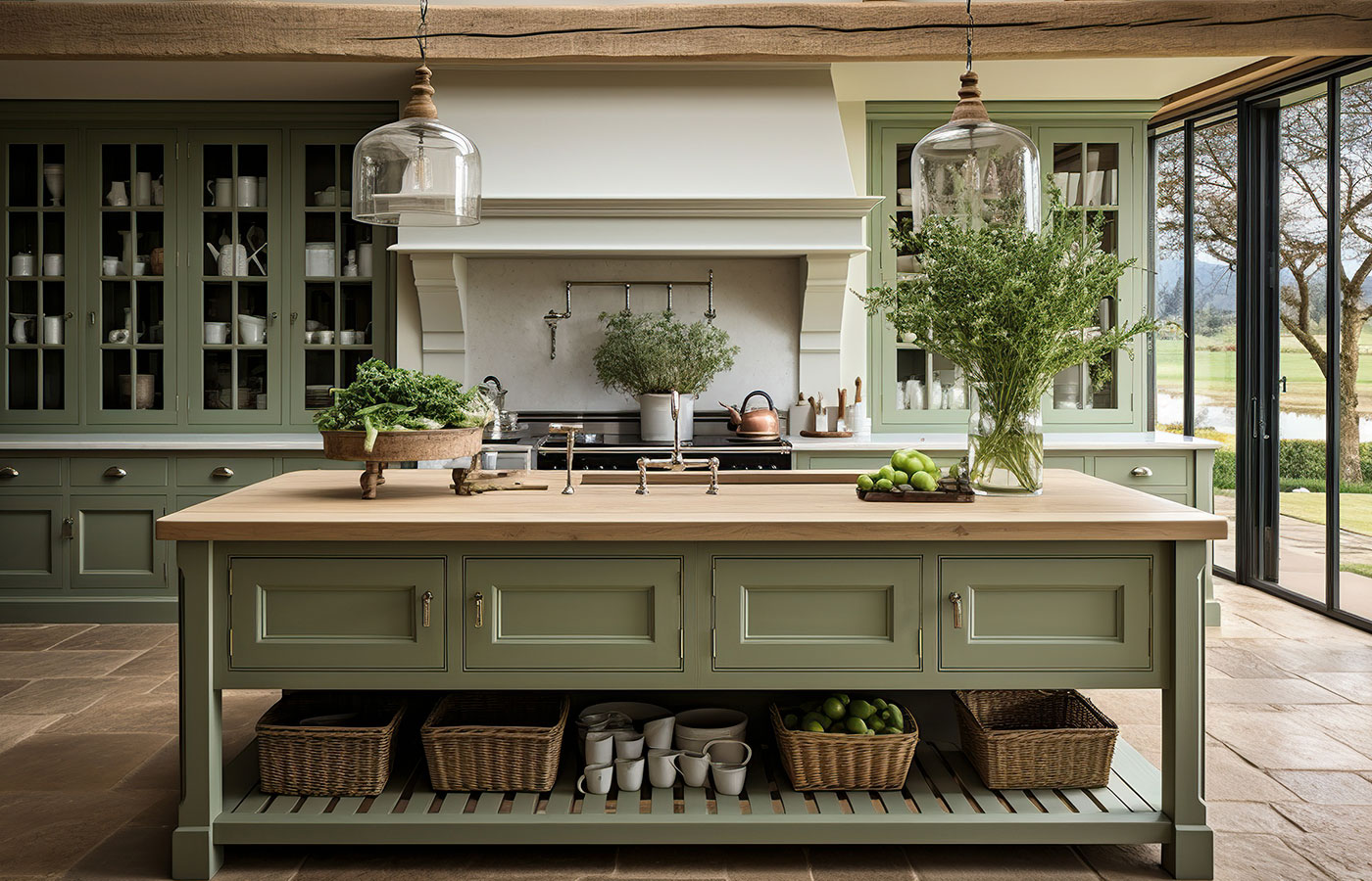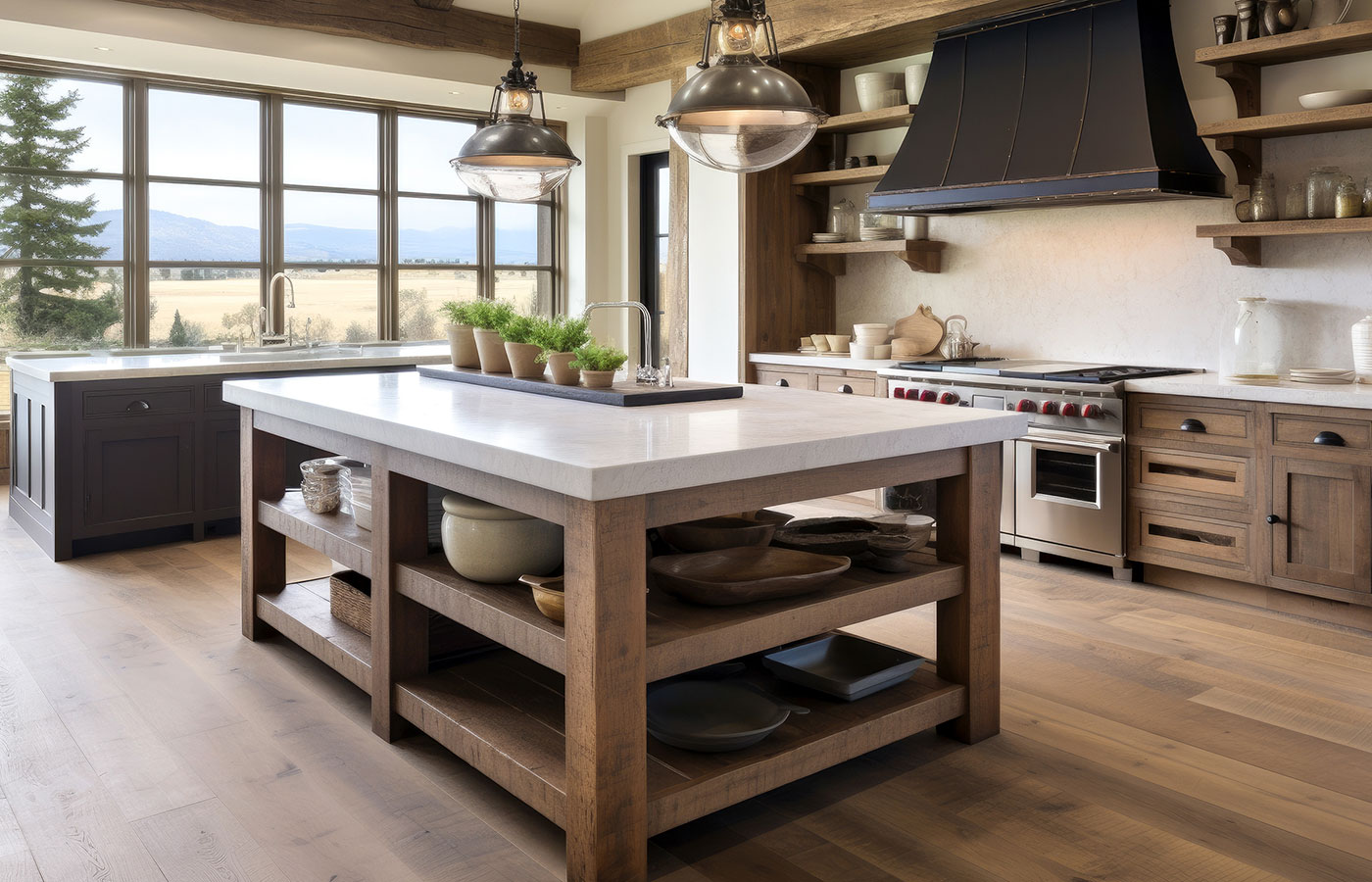 Si vous disposez d’un espace restreint ou d’une extrémité non finie, envisagez d’ajouter des étagères ouvertes pour exposer vos ustensiles de cuisine. Si votre budget est limité, vous pouvez facilement réaliser un îlot de style table de travail de conception simple.