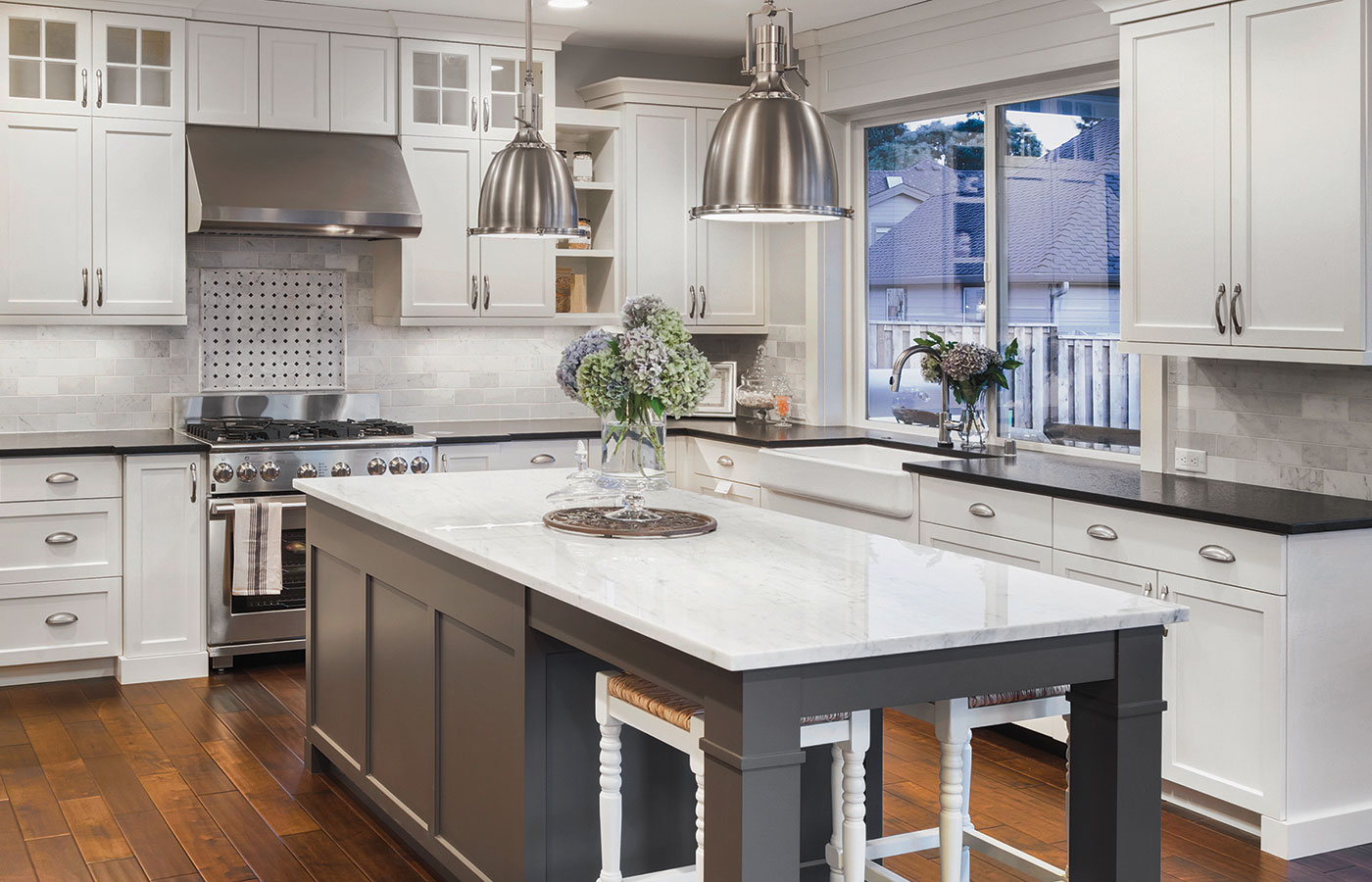 La façon la plus simple de construire un îlot de cuisine consiste à regrouper les armoires du bas et à les recouvrir d’un plan de travail. Les armoires du bas sont disponibles dans de nombreuses formes et tailles, ce qui vous permet d’obtenir facilement un aspect personnalisé.