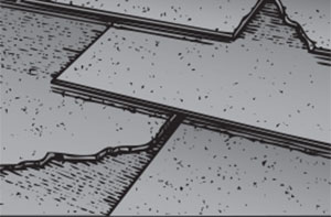 À l’extérieur, vérifiez si les bardeaux présentent du gondolage ou des ondulations, une défaillance de l’adhésif, des taches ternes en surface, des bardeaux cassés ou détachés. Des particules de granules libres à la surface sont une indication de la décomposition des bardeaux. Quelques bardeaux détachés ne signifient pas forcément un remplacement total de la toiture et peuvent exiger une simple réparation à faire soi-même.