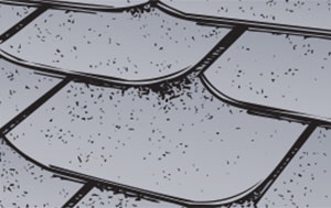 Outdoors, inspect shingles for waves or ripples, adhesive failure, surface dull spots, broken or loose shingles. Loose granules on the surface is an indication of shingle decay. A few loose shingles may not mean a total roof replacement and could be a simple DIY repair.